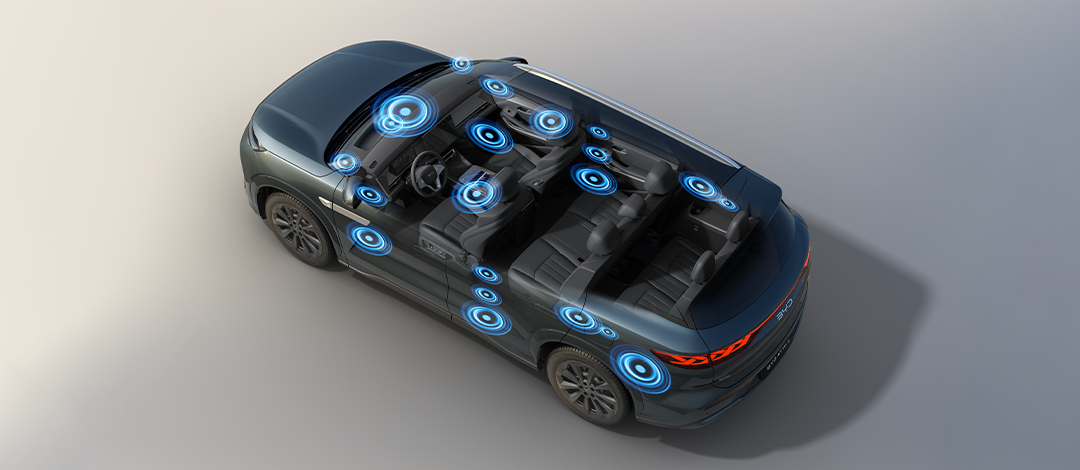 Sumérgete en la excelencia del sistema de audio DiSound que cuenta con 21 altavoces de alta fidelidad, con una potencia de 1500 W, ofrece un sonido impresionante de calidad de estudio en toda la cabina.