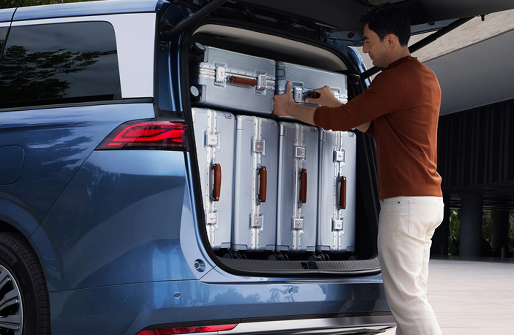 Capacidad para 4 maletas de 24 pulgadas y 2 de 20 pulgadas. Con una cajuela versátil y una distribución inteligente del espacio, tendrás lugar de sobra para equipaje, juguetes, artículos deportivos, compras y todo lo que tu familia necesite.